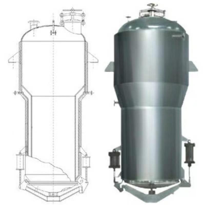 The appearance is big at the top and small at the bottom, with the shape of mushroom. The top is big so that the boiling has large buffering space without running away of materials. The bottom is small so that the heat transfer of medicine liquid is rapid, the heating time is short and the extraction efficiency is higher.