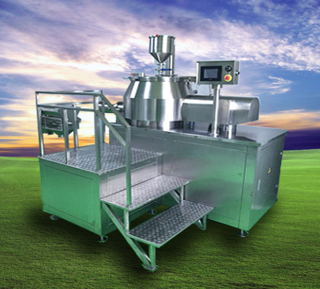 This machine is widely used in pharmaceutical,food,chemical and light industries.etc, to blend powdery materials and granulate.The blending and granulating procedures and completed in the same vessel of the machine .Powdery materials in the stationary conic vessel remain in a semi-flowing and rolling state owing tothe agitation bya blending paddle, and are fully mixed.After pouring in adhesives ,the powdery materials gradually change into fine,damp granules turn moist and their shapes begin paddle and the inside wall of vessel,powery materials tuan into loose,soft materials.Through the achion of granule shaping paddle,the soft materi~ls gradually change into fine,damp ranules with the same size.