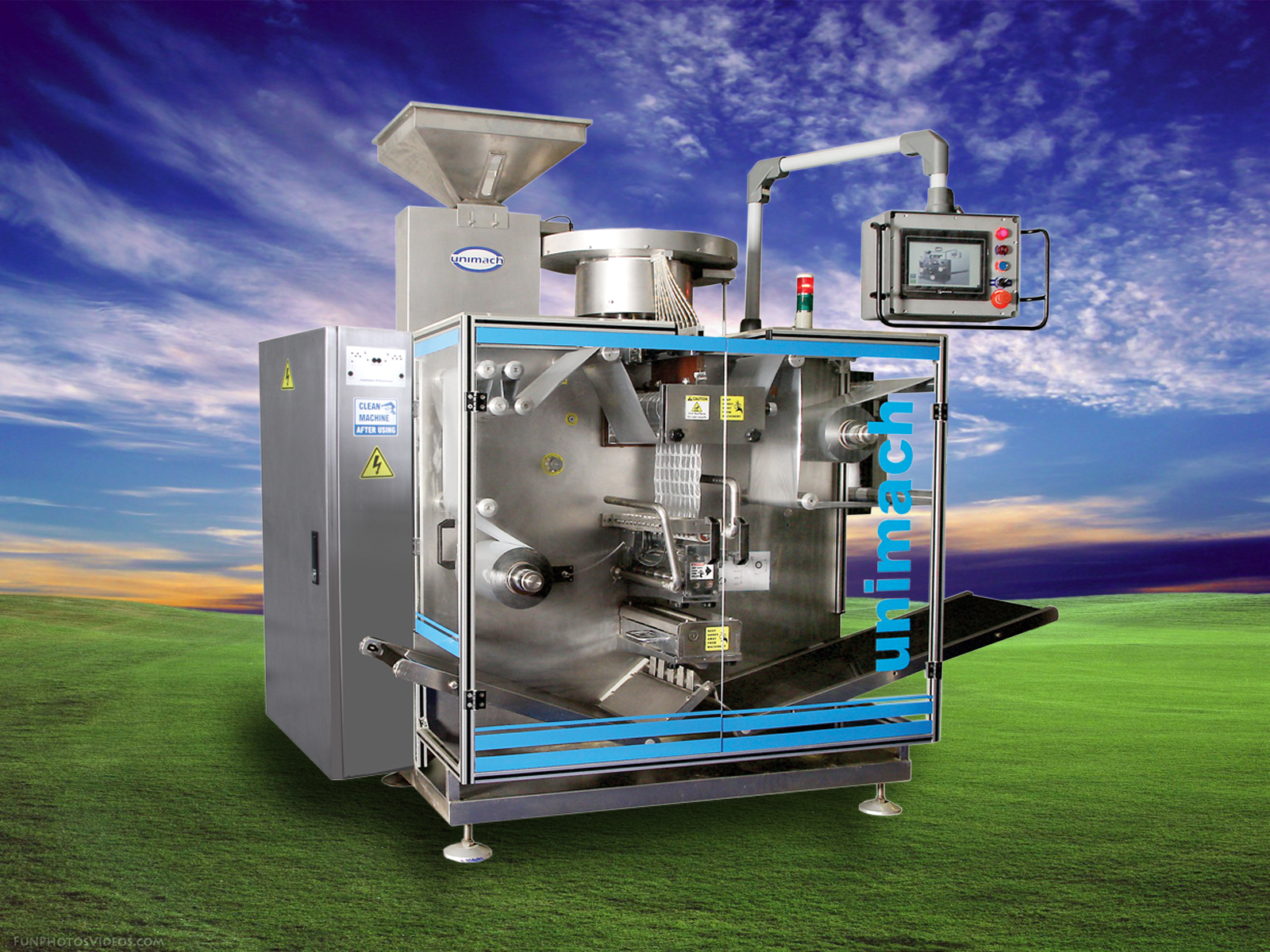 Having a stainless steel body and frame of body duly painted and provided with a stainless steel hopper having a vertical stand, an electro-magnetic vibratory feeding unit, cartridge heaters, horizontal and vertical cutting arrangements, foil holders with arms,